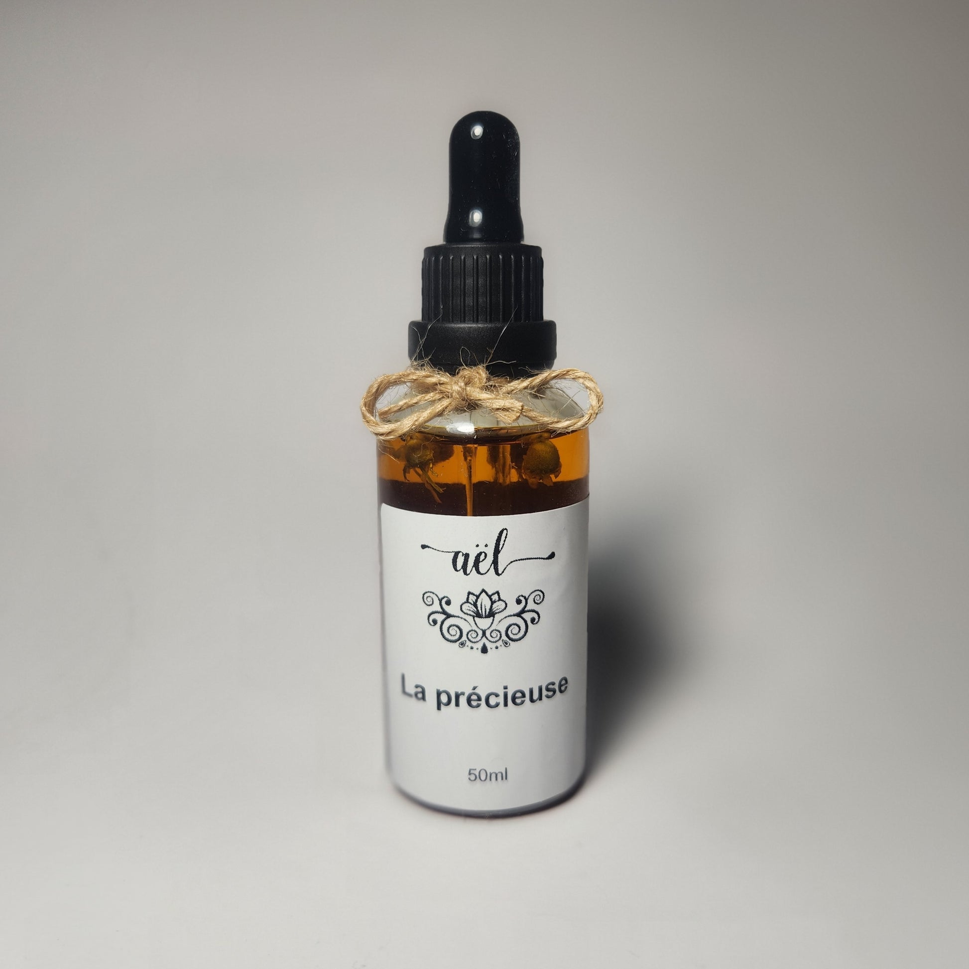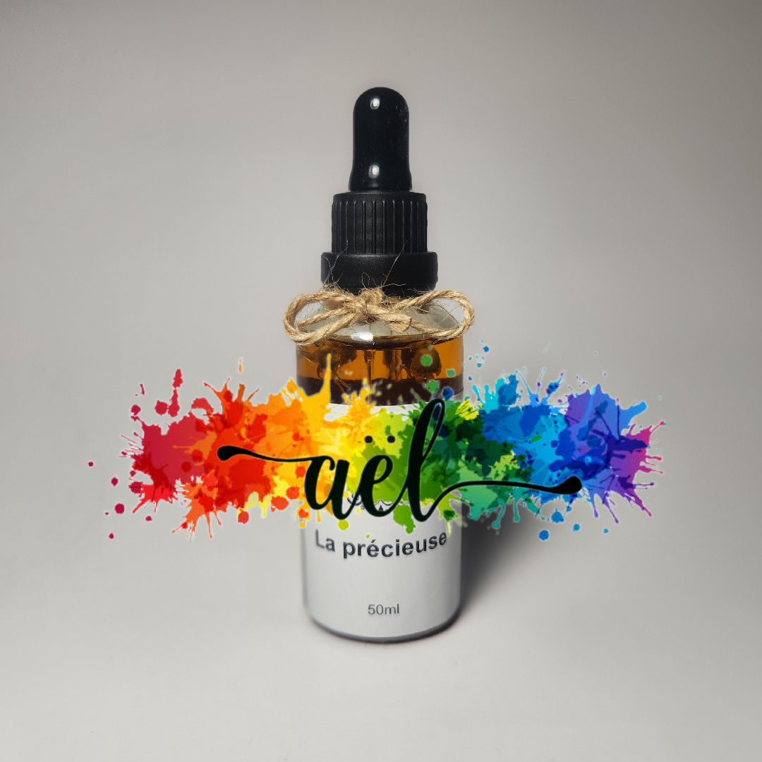 Ingrédients: Huile de pépin de raisin, Huile de tournesol, Huile de rose musquée, Huile d'argan, Huile de ricin, Huile de caméline, Huile d'abricot, Huile d'argousier, Huile parfumée naturelle de lilas et vanille, Vitamine E, Pétale de bleuet et Bouton de fleur de camomille.