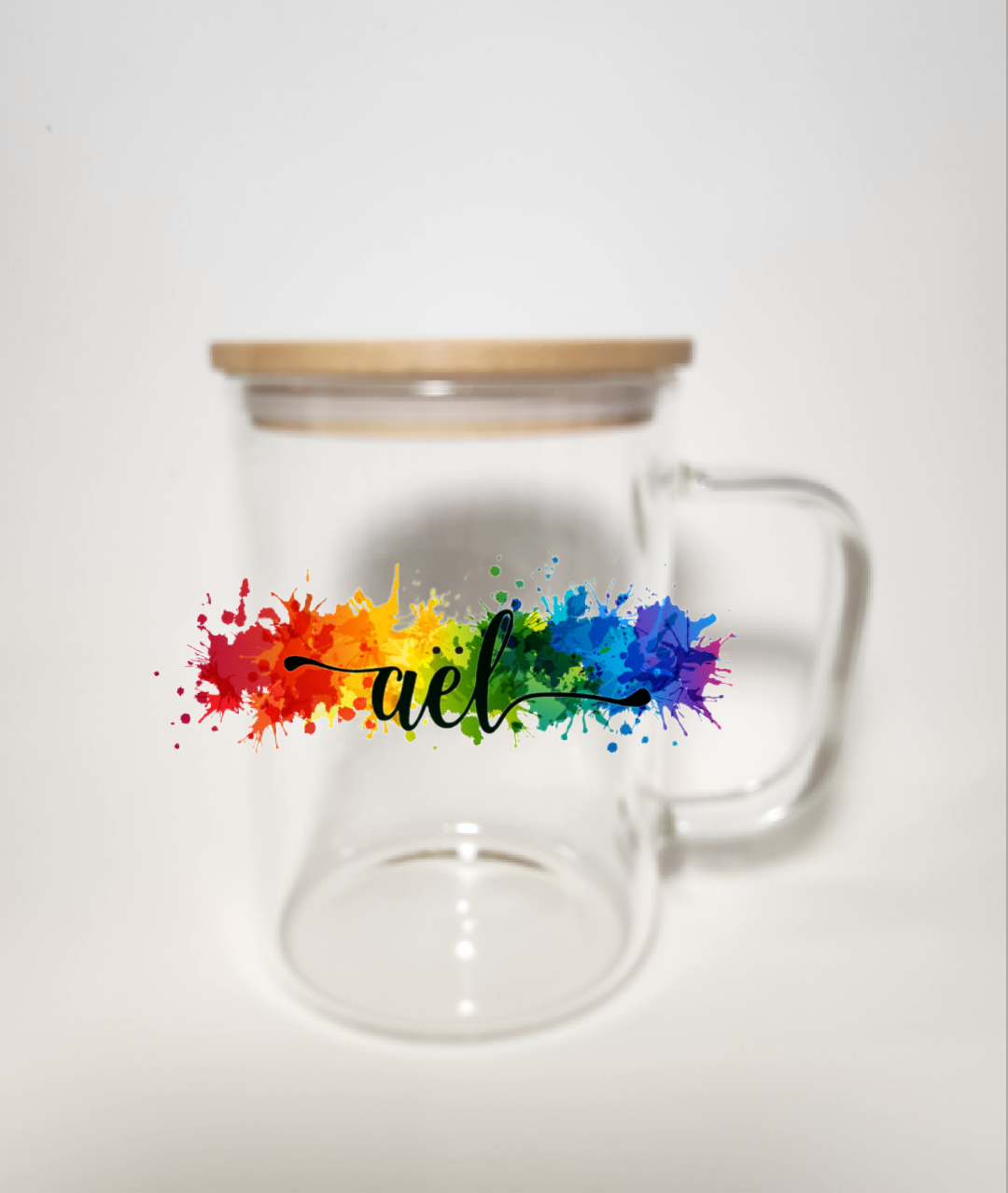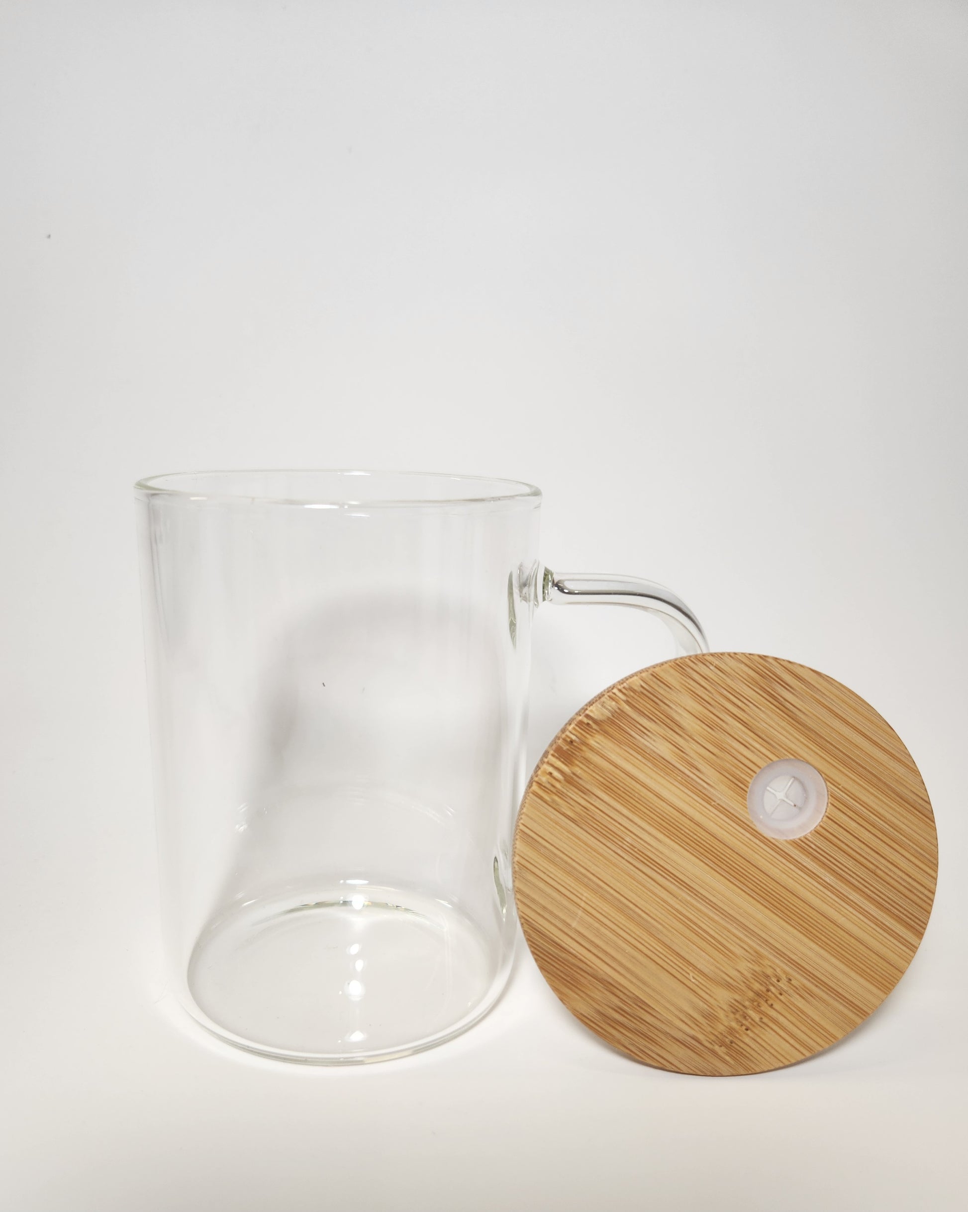Tasse en verre de 16 oz, couvercle avec en bamboo.